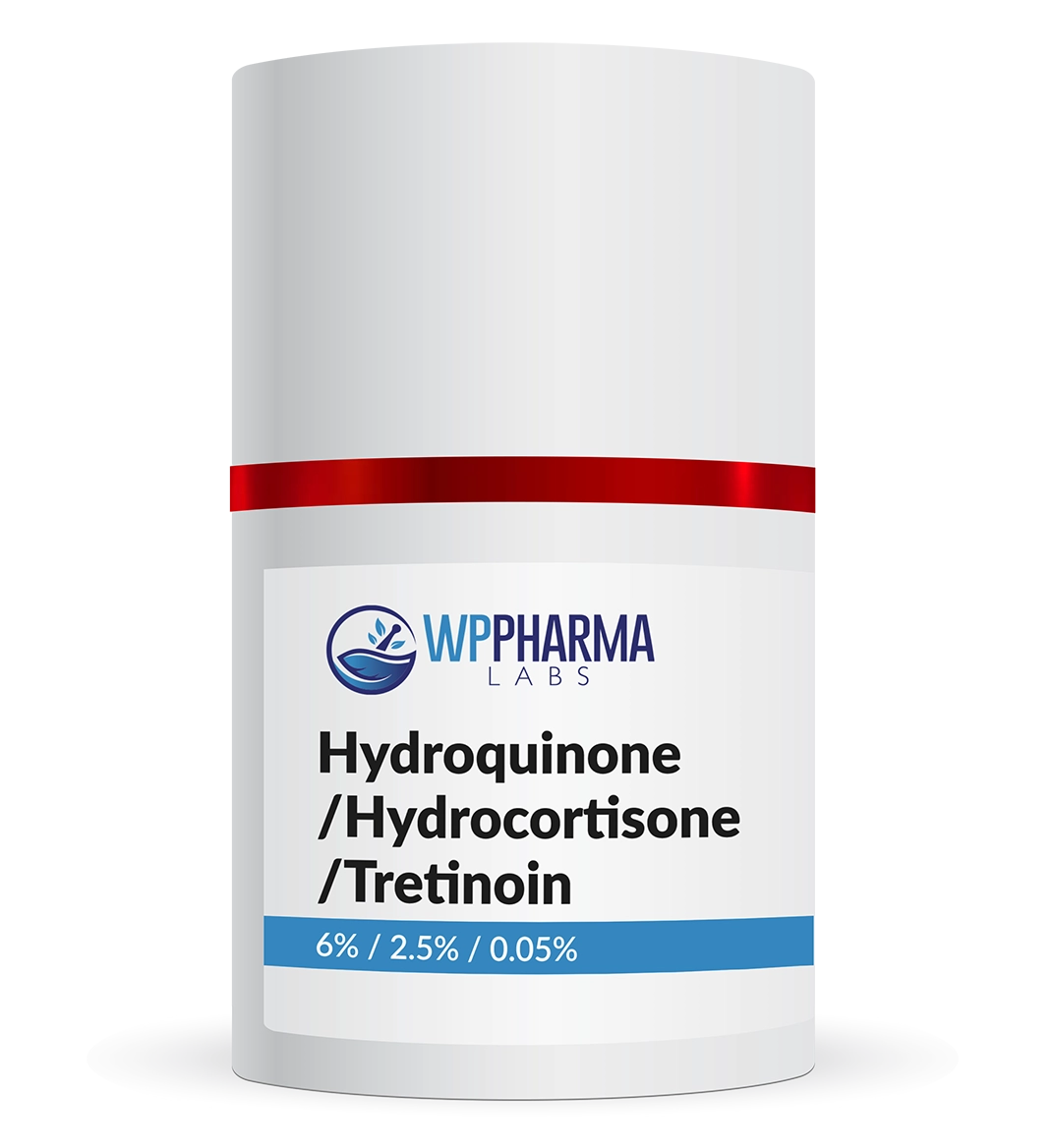 Hydroquinone / Hydrocortisone / Tretinoin is a combination depigmentation or skin-lightening formulation used to manage melasma, chloasma, solar lentigines, freckles, and post-inflammatory hyperpigmentation.