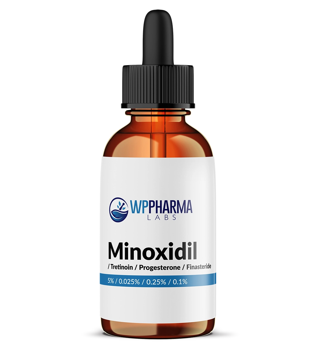 This formulation combines minoxidil, tretinoin, progesterone, and finasteride to target hormonally related hair loss. Each component works through a distinct mechanism to support hair development and growth. The combined formulation is designed to encourage thicker, stronger hair while supporting ongoing scalp and follicular health.