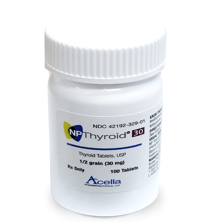 NP Thyroid® is a medication produced from porcine thyroid glands. It is a desiccated thyroid extract containing a combination of levothyroxine (T4) and liothyronine (T3). Each 60 mg of thyroid extract contains approximately 38 mcg of T4 and 9 mcg of T3, though some variability in T4 and T3 content may occur. The inconsistency in hormone concentrations within thyroid extracts contributed to the development of synthetic T4 formulations.