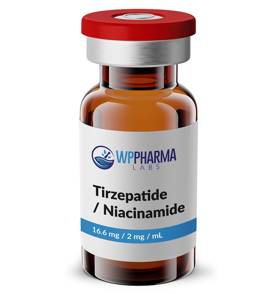 Tirzepatide / Niacinamide Injection is a combination of tirzepatide and niacinamide. Tirzepatide acts as a dual incretin receptor agonist, targeting both glucose-dependent insulinotropic polypeptide (GIP) and glucagon-like peptide-1 (GLP-1) receptors. Niacinamide (vitamin B3) supports mitochondrial function by aiding cellular energy conversion and provides antioxidant activity.
